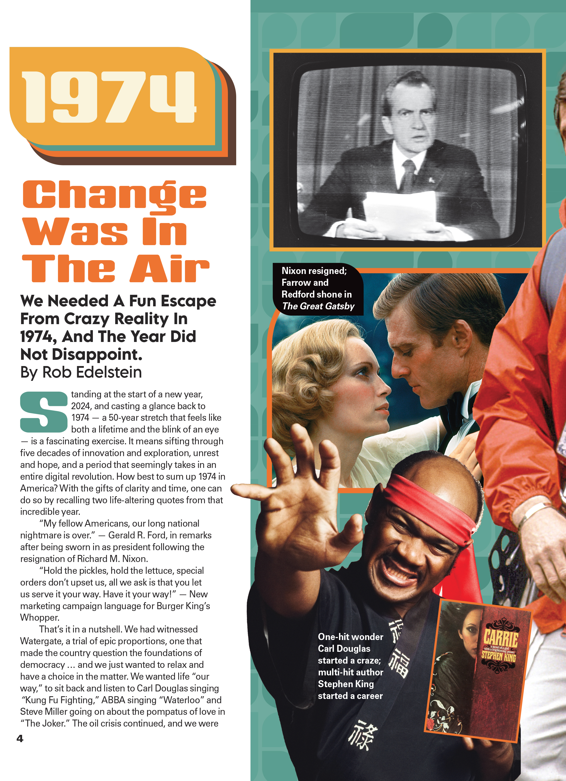 In this time capsule issue of ReMIND Magazine we look back 50 years ago to 1974! We explore the movies, television series, music and fashion that made that year unique. Go back in time and remember 1974 with us!