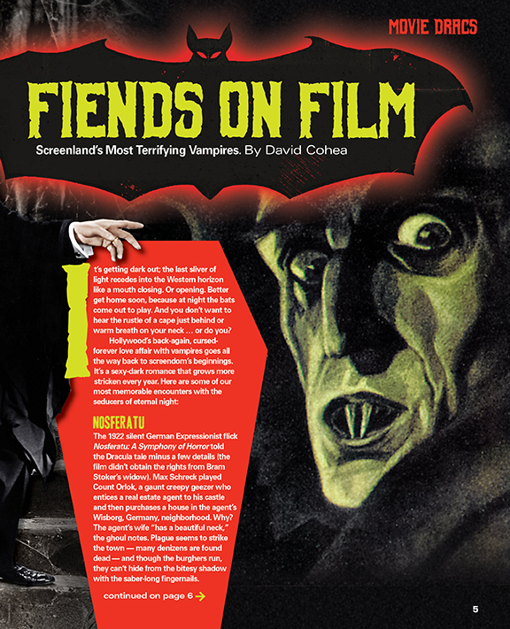 Drac is Back! In this issue you’ll see the Count and his undying tribe. We’ll delve into some of the best vampire fare in TV, movies, radio and books — and we’ll even bite off a chunk of fang lore.